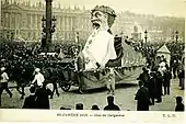 - Extrait de l'article Ce que Paris verra aujourd'hui, Un carnaval officiel auquel feront escorte deux mille flics, L'Humanité, 18 février 1913, page 1, 2e colonne. La réception a lieu le 18 février, Mardi Gras tombe le 4 et la Mi-Carême le 27.