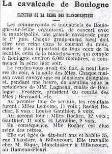 Il arrive également que les blanchisseuses soient mises à l'honneur en d'autres occasions que la Mi-Carême. C'est ainsi, par exemple, que pour une cavalcade organisée à Boulogne-sur-Seine le , est élue le 4 mai qui précède une Reine des Reines des 6 000 blanchisseuses de la ville[34].