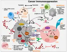 Les cellules cancéreuses induisent l'apoptose des cellules T activées en sécrétant des exosomes contenant des ligands de mort tels que FasL et TRAIL. De la même manière, les cellules cancéreuses peuvent désactiver la réponse cytotoxique normale des cellules tueuses naturelles (cellules NK)[41],[66]. Ainsi, les cellules cancéreuses semblent jouer un rôle important dans la limitation de l'activité des TILs.