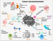 Le microenvironnement tumoral (TME, pour tumor microenvironment) est l'environnement autour des cellules tumorales qui comprend des vaisseaux sanguins des cellules immunitaires, des fibroblastes, des molécules de signalisation et la matrice extracellulaire (MEC)[1],[2],[3],[4]. Les tumeurs se définissent par la somme d'un microenvironnement tumoral et de cellules tumorales.