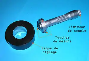 ![]() Micromètre d'intérieur trois touches avec sa bague de réglage |