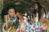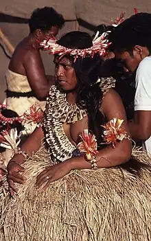 La culture micronésienne est très diversifiée à travers les atolls[41] et influencée par les cultures environnantes. À l'est on trouve une culture plus polynésienne avec des classes sociales (nobles, roturiers et esclaves) et à l'ouest une culture d'influence plus mélanésienne-indonésienne dirigée par des chefs de tribus sans noblesse, les Mariannes étant une exception. Les Micronésiens forment une région culturelle, car ils ont beaucoup plus en commun les uns avec les autres dans les pratiques culturelles et l'organisation sociale qu'avec d'autres sociétés voisines des Philippines, de l'Indonésie, de la Mélanésie et de la Polynésie[11].