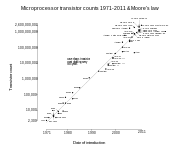 En 1969, le microprocesseur est inventé par un physicien d'Intel, Marcian Hoff (surnommé Ted Hoff)[4],[5],[6], et Federico Faggin, qui venait de le rejoindre, fort de recherches menées en Italie. Federico Faggin, physicien du solide italien est en 1968 chez Fairchild-SGS à Agrate Brianza[7], puis à Palo Alto avec Thomas Klein[7], le concepteur du premier circuit intégré commercial à grilles auto-alignées, le Fairchild 3708, puis chef de projet de la Silicon Gate Technology (SGT), la première méthode pratique pour la fabrication des circuits intégrés MOS (structure semi-conducteur/métal/oxyde) avec grilles auto-alignées, qui a remplacé la grille d'aluminium traditionnelle d'un transistor MOS par une grille en silicium, pour intégrer deux fois plus de transistors dans la même surface. Federico Faggin est embauché par Intel en [7], pour être le chef de projet, le créateur de la méthodologie de conception et le concepteur principal. En seulement quelques mois, avec Marcian Hoff, des quatre puces de l'Intel 4004, qui servit initialement à fabriquer des contrôleurs graphiques en mode texte, il conçut un processeur d'usage général, avec une licence achetée au japonais Busicom[7].