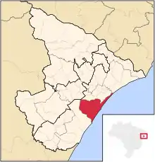 Localisation de la microrégion d'Aracaju dans l'État du Sergipe.
