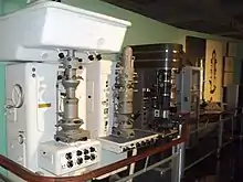 Durant la même décennie, Manfred von Ardenne commença ses recherches sur le microscope électronique à balayage et son microscope électronique universel[5]. Siemens produisit le premier microscope électronique commercialisé en 1938. Le premier microscope électronique américain fut construit à l'université de Toronto en 1938 par Eli Franklin Burton (en) et les étudiants Cecil Hall, James Hillier et Albert Prebus[6]. Le premier microscope électronique en transmission fut construit par Siemens en 1939. La réalisation d'un microscope électronique à haute résolution ne fut possible qu'après l'invention du stigmateur par Hillier, en 1946 dans les laboratoires de RCA[2]. Bien que les microscopes électroniques modernes puissent grossir les objets jusqu'à deux millions de fois, ils sont toujours basés sur le prototype Ruska. Le microscope électronique est un élément essentiel de l'équipement de nombreux laboratoires. Les chercheurs les utilisent pour examiner les matières biologiques (tels que les micro-organismes et les cellules), une grande variété de molécules, les échantillons de biopsie médicale, les métaux et les structures cristallines et les caractéristiques des différentes surfaces. Le microscope électronique est aussi largement utilisé pour l'inspection, l'assurance qualité et une analyse de défaillance des applications dans l'iie, y compris, notamment, de fabrication de dispositifs à semi-conducteurs.