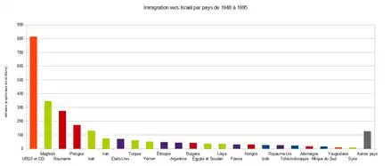 Près de 3,05 millions de personnes sont arrivées en Israël entre 1948 et 2008, sur une population totale de 7,766 millions d'habitants en 2011[1] , passée à 8,3 millions d'habitants en [2].