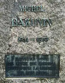 Mikhaïl Aleksandrovitch Bakounine (en russe : Михаил Александрович Бакунин, prononcé [mʲɪxɐˈil ˌbaˈkunʲin]), francisé en Michel Bakounine, né le 18 mai 1814 ( dans le calendrier grégorien) à Priamoukhino (ru) près de Torjok (gouvernement de Tver, Empire russe) et mort le à Berne (Suisse), est un révolutionnaire, théoricien de l'anarchisme et philosophe russe qui a particulièrement écrit sur le rôle de l'État. Il pose dans ses écrits les fondements du socialisme libertaire.
