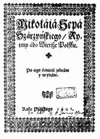 Mikołaj Sęp Szarzyński (c. 1550 - c. 1581) est un poète polonais de la renaissance tardive qui a exercé une grande influence sur toute une génération d'écrivains[1]. Il a écrit en polonais et en latin.