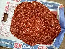 Un tas de mil étalé sur un sac. - Digitaria iburua (fonio noir)[5],