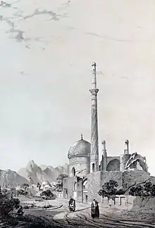 Dessin de la Masdjed-é-Bâbâ Sokhteh par Eugène Flandin (1851).