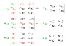 Si A est une matrice carrée de taille n, les mineurs d'ordre n – 1 permettent le calcul du déterminant de A, selon la formule de Laplace. Ils sont au signe près égaux aux cofacteurs.