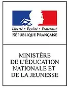 Le logotype du ministère varie régulièrement au gré des changements de dénominations. Le logotype suit systématiquement les règles et principes de la charte graphique de la communication gouvernementale en France avec le système du « bloc marque ». De 2000 à 2014, le ministère bénéficiait d'un logo particulier (un « É » stylisé comme icône, et représentant une pomme[16], symbole de la connaissance), créé par Ruedi Baur[17], abandonné pour être remplacé par un logo standardisé.