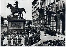 À la demande de l'archiduc héritier du trône François-Ferdinand d'Autriche, qui à la demande de l'empereur a pris une part spéciale à l'armée, un aigle en bronze (envergure 16 m) a été placé au milieu de la façade comme point de couronnement.
