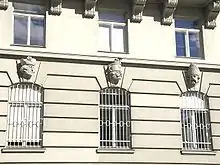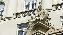 À l'arrière du bâtiment, dans l'attique, figurait une inscription avec la devise « Si vis pacem para bellum » (Si vous voulez la paix, préparez-vous à la guerre). Celle-ci a été supprimée au cours de la rénovation du bâtiment après 1945.