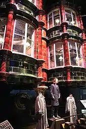 Pour rappeler qu'il s'agit, dès le cinquième volet, d'un lieu où des choses sinistres commencent à se mettre en place, Craig et le réalisateur David Yates décident d'installer dans le décor de l'atrium une grande bannière flottante à l'effigie du ministre en s'inspirant des affiches de propagande du début de l'ère soviétique[15]. Limitée par la hauteur sous plafond des studios, l'équipe décide de construire deux étages de bureaux pour les employés fictifs et d'ajouter des niveaux supérieurs par ordinateur[16].