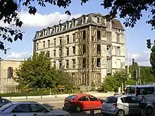 La façade donne sur le pont sur lequel passe la route départementale 443, nommée avenue Général-Leclerc à Bar-sur-Seine.