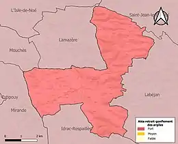 Le retrait-gonflement des sols argileux est susceptible d'engendrer des dommages importants aux bâtiments en cas d’alternance de périodes de sécheresse et de pluie. La totalité de la commune est en aléa moyen ou fort (94,5 % au niveau départemental et 48,5 % au niveau national). Sur les 185 bâtiments dénombrés sur la commune en 2019, 185 sont en aléa moyen ou fort, soit 100 %, à comparer aux 93 % au niveau départemental et 54 % au niveau national. Une cartographie de l'exposition du territoire national au retrait gonflement des sols argileux est disponible sur le site du BRGM[20],[Carte 3].