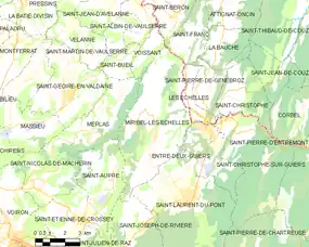 Le territoire de la commune est principalement bordé à l'est et au nord par un cours d'eau notable, le Guiers, une rivière de type torrentiel d'une longueur de 50 km[13], qui marqua autrefois la frontière entre la France et le duché de Savoie, puis le royaume de Sardaigne.