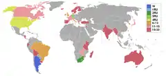 | Disparitions | Autriche, Chili, Ghana, Gibraltar, Hawaii, Honduras, Hong Kong, Jamaïque, Nouvelle-Zélande, Paraguay, Pérou, Portugal, Suisse, Venezuela | |||||||