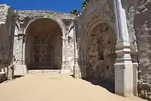 Le , une série de secousses sismiques détruisit une grande partie de l’édifice (à l’exception du transept et de la sacristie) et tua une quarantaine d’Amérindiens qui étaient présents à la messe[18]. Le tremblement de terre fut la dernière catastrophe de l’année marquée par une tempête et des inondations qui provoquèrent de nombreux dégâts et détruisirent une partie des récoltes. L’année suivante fut érigé un nouveau campanile (campanario) pour abriter les cloches, et, en 1815, on tenta vainement de reconstruire l’église à partir des éléments restant debout. Les Pères José Barona et Boscana supervisèrent les travaux d’une petite infirmerie en 1814. Pour soigner les malades de la mission, on utilisa la médecine amérindienne[19].