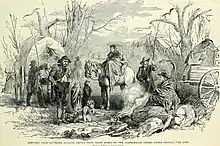 À la fin de la guerre en 1865, près de 110 000 Missourians ont servi dans l'armée de l'Union et au moins 30 000 dans l'armée confédérée ; beaucoup ont combattu dans des bandes de partisans pro-confédérés connus sous le nom de bushwhacker[1],[2]. La guerre au Missouri est continue entre 1861 et 1865, avec des batailles et d'escarmouches dans toutes les régions de l'État, des frontières de l'Iowa et l'Illinois au nord-est jusqu'à la frontière de l'Arkansas au sud-est et au sud-ouest. En comptant les actions mineures et les escarmouches, le Missouri subit plus de 1 200 engagements distincts dans ses frontières ; seuls la Virginie et le Tennessee en ont eu plus.