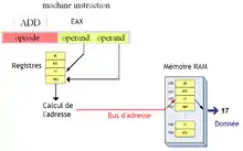 De nombreuses instructions font référence à des données se trouvant à différents endroits de la machine : registres, pile d'exécution, mémoire statique, mémoire dynamique (tas), ports d'E/S.