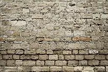 L'emploi, dans un même édifice, de moellons hétérométriques ou de pierres de taille de nature pétrographique et de provenance différentes, est appelé polylithisme de construction (du grec ancien πολύς / polús, « beaucoup », et λίθος / lithos, « roche »). Il peut revêtir deux aspects : polylithisme originel (primaire) lié aux constructions monophasées (pour des raisons architecturales — solidité, esthétique, technique, pratique[11] — ou plus simplement d'économie[12]) ; polylithisme acquis (secondaire) lié aux constructions polyphasées (édifices religieux édifiés sur plusieurs siècles[13], constructions séparées par des épisodes de destruction et de modifications diverses)[14].