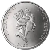 Le portrait d'Élisabeth II continue de figurer sur l'avers de toutes les pièces de monnaie en dollar des Îles Cook. Les Îles Cook utilisent aussi le dollar néo-zélandais, dont tous les billets de banque comportent le portrait de la reine en filigrane[12]. Cependant, seul le billet de 20 dollars porte son effigie comme élément principal[13],[N 2]. En outre, plusieurs membres de la famille royale ont été représentés sur des timbres émis par les Îles Cook[14].