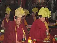Trisong Detsen y organisa, en 792, un débat philosophique entre les tenants du bouddhisme indien et ceux du bouddhisme chinois. À l'issue du débat[2], connu sous le nom de concile de Lhassa, le bouddhisme indien l'emporta. Aussi Trisong Detsen déclara-t-il le bouddhisme religion d'État au Tibet[3] en présence de Padmasambhava et sa parèdre (épouse mystique) Yeshe Tsogyal, de Shantarakshita et Vimalamitra, ainsi que de nombreux traducteurs dont Vairotsana. Trisong Detsen organisa également la répression de l'ancienne religion tibétaine (le bön)[3].
