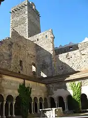 Le cloître du XIIe siècle est la partie centrale du couvent autour de laquelle se répartissent les autres édifices. Il fut construit par-dessus un premier cloître plus ancien, dégagé lors de fouilles récentes. Du cloître primitif ne subsiste pas l'ensemble des galeries, une partie ayant été détruite pour créer une citerne. La mise au jour de ce premier cloître a permis d'exhumer deux peintures murales. Il ne reste presque aucun élément d'origine du cloître moderne, la quasi-totalité de ses colonnettes et chapiteaux ayant été dispersés et vendus, provoquant l'effondrement de certaines galeries.