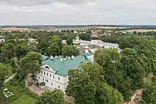 L'ensemble du monastère comprend : l'église de la Nativité-de-la-Vierge (1310—1311.), l'église-réfectoire de Saint-Nicolas Thaumaturge (1519)[10], la maison de l'Archevêque (1805), les ruines du pilier de Snetogorski, le clocher de l'église de l'Ascension du Seigneur (1526 — XIXe siècle), la Sainte Porte et la clôture du monastère des XVIIe siècle et XVIIIe siècle. Le périmètre de la propriété du monastère s'élève à 420 mètres[11],[12]