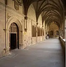 Le Cloître des Chevaliers est une construction de la première moitié du XVIe siècle. Il est composé de deux plans. Dans leur ensemble les voûtes sont du gothique flamboyant et plateresque dans les percées sveltes ogivales, qui sont affirmés sur les supports Renaissance.