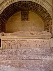Ce sépulcre de Blanche de Navarre mérite qu'on s'y arrête. La descendante du Cid mourut probablement en couches. Elle est figurée sur le sarcophage, entourée du souverain soutenu par ses serviteurs et des pleureuses. Étendue sur le lit, elle rend l'âme figurée sous la forme d'un enfant porté par les anges. Les autres faces et le couvercle représentent des scènes bibliques : Christ en majesté avec les apôtres et un chrisme, le roi Salomon, l’Épiphanie, le massacre des Innocents, et la parabole des Dix Vierges.