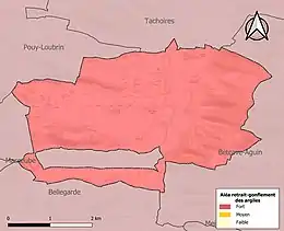 Le retrait-gonflement des sols argileux est susceptible d'engendrer des dommages importants aux bâtiments en cas d’alternance de périodes de sécheresse et de pluie. La totalité de la commune est en aléa moyen ou fort (94,5 % au niveau départemental et 48,5 % au niveau national). Sur les 74 bâtiments dénombrés sur la commune en 2019, 74 sont en aléa moyen ou fort, soit 100 %, à comparer aux 93 % au niveau départemental et 54 % au niveau national. Une cartographie de l'exposition du territoire national au retrait gonflement des sols argileux est disponible sur le site du BRGM[21],[Carte 3].