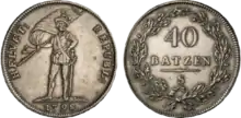 - Revers : 40 Batzen, entouré de deux branches de chêne ;