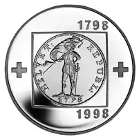 En 1998, Swissmint a frappé une pièce de 20 francs en argent pour commémorer les 200 ans de la République helvétique[4].