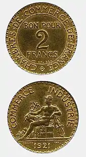 De 1920 à 1927, l'État lui-même frappa trois pièces en bronze d'aluminium portant la mention « bon pour » 2 francs, 1 franc et 50 centimes, ainsi que « Chambres de Commerce de France » et non « République Française ».