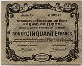 Les chambres de commerce territoriales (départementales ou infra-départementales) furent autorisées à émettre des bons imprimés, les billets de nécessité, pour des valeurs de 1 franc, 2 francs, 5 francs et 10 francs, rarement plus.