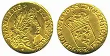 Si la figuration du souverain sur les monnaies remplaçait le symbole d’unification nationale qu’était l’écu de France sur le premier type monétaire du louis d’or, les deux coexistèrent sur de nombreux autres types monétaires postérieurs. Néanmoins, la figuration systématique du souverain sur les espèces symbolisait mieux que tout autre, la centralisation du pouvoir entre les mains du monarque absolu (les premières figurations du souverain apparurent sous Louis XII, à la fin du XVe siècle, mais elles ne furent pas systématisées).