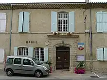 Blason | Tiercé en fasce : au 1er d'azur à la fleur de lis d'or, au 2e d'argent crénelé de six pièces et chargé d'un araire de sable, au 3e de gueules au dauphin couronné d'argent accompagné d'un soleil levant et d'un aquilon mouvant de l'angle senestre du chef de la partition, le tout d'or. |