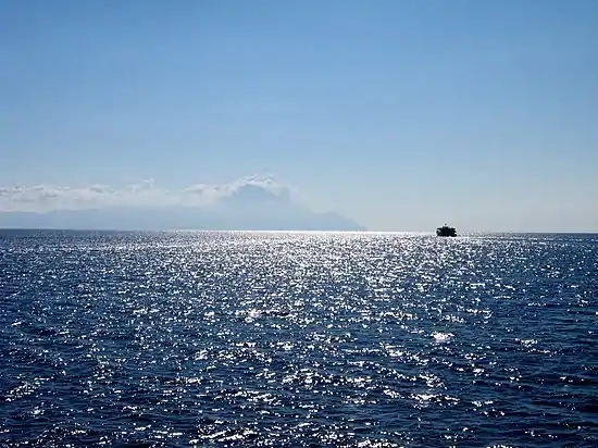 De nombreux voyageurs ont relaté leur voyage au mont Athos, de Pierre Belon au XVIe siècle à Jacques Lacarrière. Selon les auteurs anciens, confirmés par Belon, le soir du solstice d'été, l'ombre du Mont Athos, distant de 70 km, s'étend jusqu'à la place de Myrina, sur l'île de Lemnos, où l'on avait élevé dans l'Antiquité la statue d'un bœuf de bronze. Plutarque cite même un vers (̉Άθως καλύψει πλευρά Λημνίας βοός : « le mont Athos couvrira le flanc du bœuf de Lemnos ») qui était devenu proverbial pour désigner ceux qui, par leurs calomnies, dénigraient les mérites des autres[27].