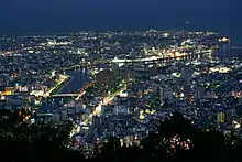 Vue nocturne de la ville de Tokushima depuis le sommet du mont Bizan.