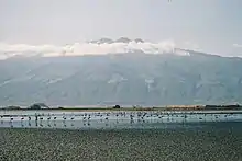 Le mont Gelai dominant le lac Natron logé dans la vallée du Grand Rift | ||