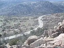 Le sommet peut également être atteint en randonnée pédestre, bien qu'il n'y ait pas d'itinéraire tracé jusqu'au sommet, et les groupes importants de piétons sont interdits sur la route. Cependant, les visiteurs sont autorisés à stationner à la base de la montagne et à se rendre aux voies d'escalade disponibles sur la montagne.