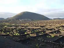 Vue de la Montaña Diama depuis la plaine de La Geria. | |||