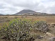Buissons de Kleinia neriifolia devant la Montaña Tamia
