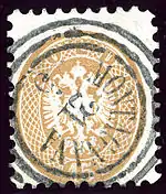 Timbre du Royaume lombardo-vénitien, 15 soldi, émission de 1864, oblitéré MONTAGNANA