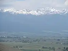 Vue des montagnes Bleues depuis la vallée orientale de la Powder River à Baker City.