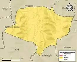 Le retrait-gonflement des sols argileux est susceptible d'engendrer des dommages importants aux bâtiments en cas d’alternance de périodes de sécheresse et de pluie. La totalité de la commune est en aléa moyen ou fort (44,5 % au niveau départemental et 48,5 % au niveau national). Sur les 129 bâtiments dénombrés sur la commune en 2019, 129 sont en aléa moyen ou fort, soit 100 %, à comparer aux 75 % au niveau départemental et 54 % au niveau national. Une cartographie de l'exposition du territoire national au retrait gonflement des sols argileux est disponible sur le site du BRGM[19],[Carte 2].