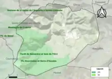 - le « massif du Dourmidou et Forêt de Salvanère » (5 368 ha), couvrant 5 communes dont 3 dans l'Aude et 2 dans les Pyrénées-Orientales[24];